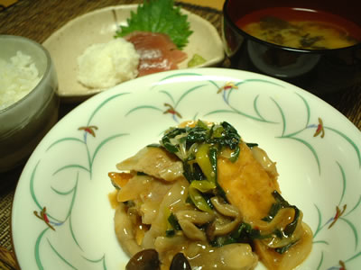 シャキシャキの歯ごたえ、水菜って大好きです。お鍋に入れても美味しいし、サラダもさっぱりしてて美味しいですよね。昨日は油っぽい食事だったので今日は和食です。