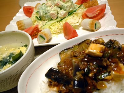 今日の豚肉とナスの豆板醤炒めはイマイチ。いつも適当に創作して作るのでマズイ!ってものも多々ありなのです。まだまだ勉強中ですね。
