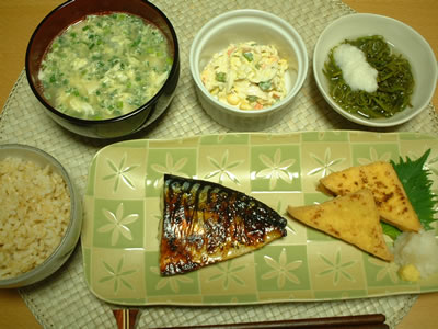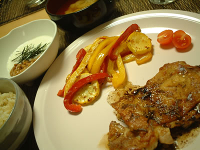 あまりにも肉続きの食事だったので今日は魚にしました。コレステ対策といいつつ、たった1日しか本みて作ってない。この前は郵送キットで血液検査したんだけど、ごっちのかかりつけの病院からもコレステロールが高いから食事には気をつけてくださいってまた言われたそうです。体のことを考えたら1汁1菜やマクロビオテック(マドンナやトム・クルーズもやってる全粒穀物と、季節ごとにとれる伝統的な食べ物を食べる。菜食主義に近いかも)の食事をした方がいいのでしょうね。