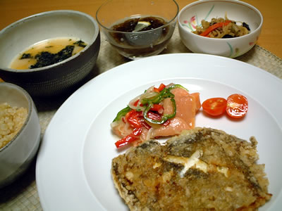 *カレイの唐揚げ *サーモンのマリネ *切干大根 *もずく *とろろ汁