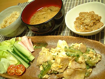 6月23日(水) *ゴーヤチャンプルー *納豆 *味噌汁