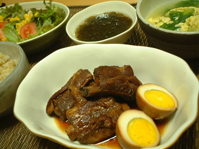 *スペアリブのとろとろ煮込 *青梗菜の中華風スープ *もずく酢 *サラダ
