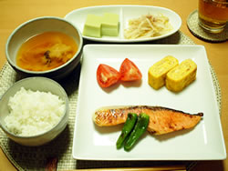 炒めるだけの簡単メニューにまぜるだけの納豆だったり・・・。ご飯は圧力鍋で一度に3合炊くので1食分づつ冷凍保存して1週間もちます。なので毎晩レンジでチン♪