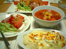 久しぶりのグラタン、おいすぃー! クリーム系が好きなんです。もちろんトマトも大好きなんですけど、どっちかといえばクリーム系を選んでしまうことがおおいですね。明らかにカロリー高いほうを選んじゃってます。 ぼちぼちダイエットを再開せねばマズイ状態になりつつある・・・・・どよーん