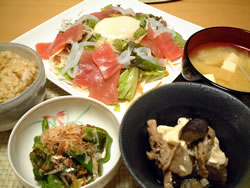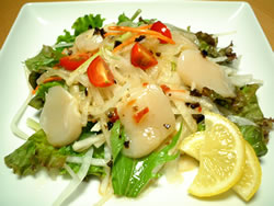 ホタテのサラダはピエトロドレッシングをささっとかけた簡単サラダです。ホタテが乗っただけなんですけど・・・見栄えよくなりますよね〜 |