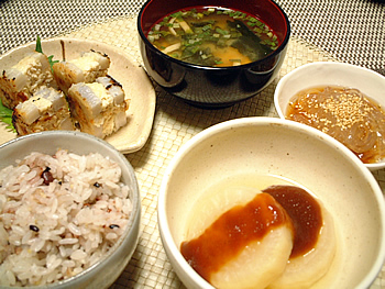 赤味噌を酒、みりん、砂糖でのばして味噌だれを作りました。 |