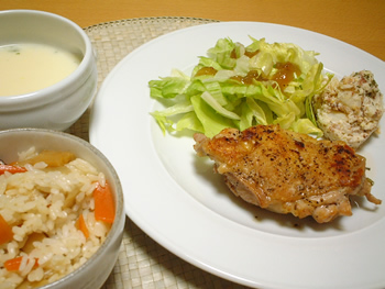 今日は主婦モードだったので久々和食でも作るか!と筍ご飯、筍煮物、鯖の味噌煮の予定が・・・急にオットが帰ってきたのでチキンを焼くだけになっちゃいました。