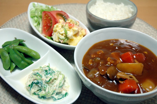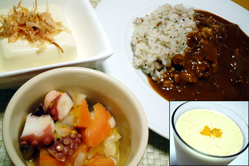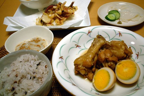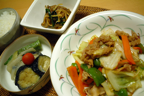 毎日メニューを考えるのって一苦労。実は、今日のお昼も回鍋肉を食べたのに、夜も作ってしまった。夏野菜は茄子、オクラ、玉ねぎを軽く素揚げして出汁に漬け込んだもの。オリジン弁当のお惣菜のマネして作りました。