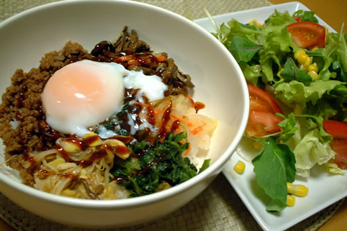 今日もナルム類がセットになって売っていたのでそぼろ炒めて温玉のせるだけで出来上がり。