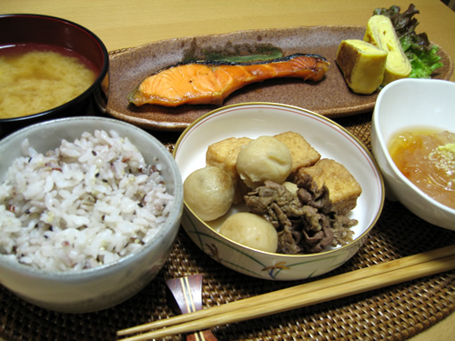 今日はバランスよく作ったつもりなんですが、今日もまたオットから「この煮物が一品多かったね」と物申されてしまった。自称、粗食推進委員らしいです。 鮭の塩焼きだけじゃ物足りないような気がして煮物も作ったんだけど多いですか? 量を減らせばいいのだろうか? 作り甲斐がないなぁ〜