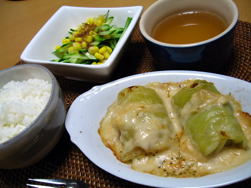 * ロールキャベツのオーブン焼き * サラダ * コンソメスープ