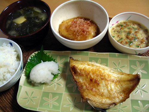 最近のマイブームは焼魚。引越した時に新しくガスコンロを買って、魚グリルは洗うのが面倒だから使ってなかったんですけど、母からこの鯵の開きは美味しいよ!ともらったので、グリル汚すのは嫌だけど、美味しく食べたいしなぁ〜と葛藤しつつ初めて使ってみたら、いい具合に焼けてすっごく美味しかった。今時のグリルは遠赤外線加熱ってやつで美味しく焼けるようになってるんですね〜 それで味を占めて焼魚に凝ってるというわけです。揚げ物の温めなおしもトースターよりグリルの方が美味しいらしい。試してみなくては! |