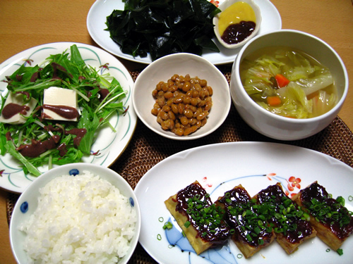今日もヘルシーにしたつもり。 しかし、どう見ても食べすぎ!!最後は「うぷっ」となりながら完食しましたから。ヘルシー気分でも食べすぎで痩せないらしいです。おかげでストレス=効果のないダイエットになってますけどね(笑) オットから、晩ご飯多すぎ!!!といつも注意されるにもかかわらずこの有様。 あー、誰か毎日作りに来てくれないかなー