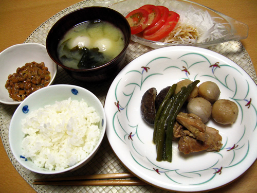 うちのオット「晩ご飯は粗食年間にしよう。健康のためにもご飯と味噌汁、納豆だけでいい」と何度も言うので口にガムテープを貼っておきたいくらいです。たまに粗食もいいけど、やっぱり美味しいものを食べて死にたい。と思う私は痩せませんね(苦笑)