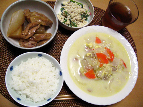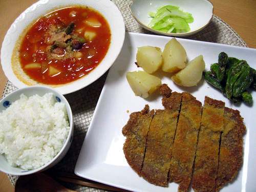 昔なつかしの定番晩ご飯みたい。とても質素です。