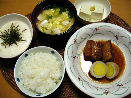 禁断の角煮が恋しくなり作ってしまいました。 コトコト煮こんでほろほろと崩れるほど軟らかく出来上がりました。またお肉と一緒に煮込んだ玉子が美味しいんですよね〜 角煮を作るときは出来るだけ脂を取り除きます。一度豚肉の表面をカリっとプライパンで焼き(この段階でも脂がたくさんでます)、それから煮込むんですが、一度冷まして上に浮かび上がった白い脂を全部捨てて再度煮込みます。 これで随分と余分な脂肪分はカットされますよ。