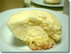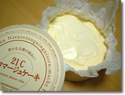 「カマンベールチーズケーキ」 雑誌やテレビでも取り上げられるほど人気で千歳空港お土産No.1というウワサのケーキです。 名前の通りカマンベールチーズそっくりなこのケーキ。大きさは12cmでパッケージもチーズそっくりなのです。白カビのかわりに粉糖がたっぷり振ってあります。 合成保存料などは一切使用せず、オーストラリア産と北海道産の上等なチーズをブレンドして深みのある味に仕上げられているそうです。 ふわっふわん♪なのです。このカット写真でわかりますか??やわらかそうな上下のスポンジ生地。スポンジも中のチーズもやわらかくてしっとりしてて軽い口当たり。チーズ部分はクリームチーズにアングレーズ(カスタードソース)を加えられているのでほんのりカスタードの甘みがして美味しい!ムースっぽい感じですね。 今まで食べたチーズケーキの中でふわふわ度No.1に決定!柔らかいからあっさり感じてしまうのでしょう?、ガッツリ食べれそうです。ひとりで1個なんて楽勝だけどこの美味しさおすそ分けして食べました。北海道行ったら必ず買って来る事必至。