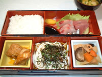 お昼の船で帰るので、弟に何が食べたい?と聞くと「最後にまた五島うどんが食べたい」と言ったんだけどそんな安いのじゃなくて最後の昼食はちょっと豪華に食べようよと無理やりガイド本に載ってた「うおくに」というお店に行き、ランチの中で一番高かったうおくに定食1,500円を注文した。