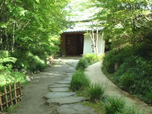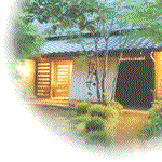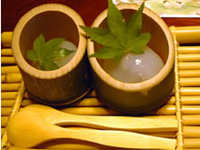 ここは 全室離れ形式で緑にかこまれた静かなお宿。 希望は内風呂&露天付の部屋だったんだけど、早々に予約したにもかかわらずすでに満室で岩風呂付のお部屋に通されました。8畳の和室と洋室のベッドルームに岩風呂の内湯付という充分な広さでした。テーブルにはいらっしゃいませのメッセージと竹筒に入った水羊羹が準備されててほっと嬉しいひととき。窓を開けると緑いっぱいの庭を眺めることができて森の中にいるみたい。