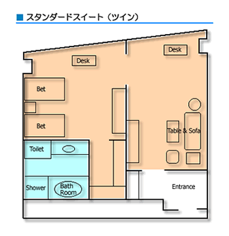 今回泊まったお部屋はスタンダードスイート(ツイン)です。通常7万円の部屋らしい。